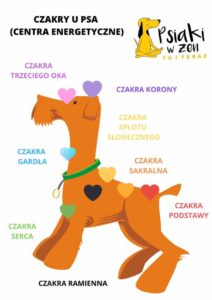 Both we and our dogs have not only a physical body, but also an energy body. The latter is, of course, very subtle, does not have a visible form or mass, but it is of great importance in the context of our well-being, health and behavior. Energy centers (also known as chakras) are places in the body that sort of connect these two spheres (physical and energetic), being responsible for energizing individual areas in the body. Their action can be disturbed by various factors and thus “materialize” in the form of certain “undesirable” behaviors, as well as organ dysfunctions. In our case, even our thoughts and unsupportive beliefs can lead to a disorder of their functioning (i tell you more about it in my course).